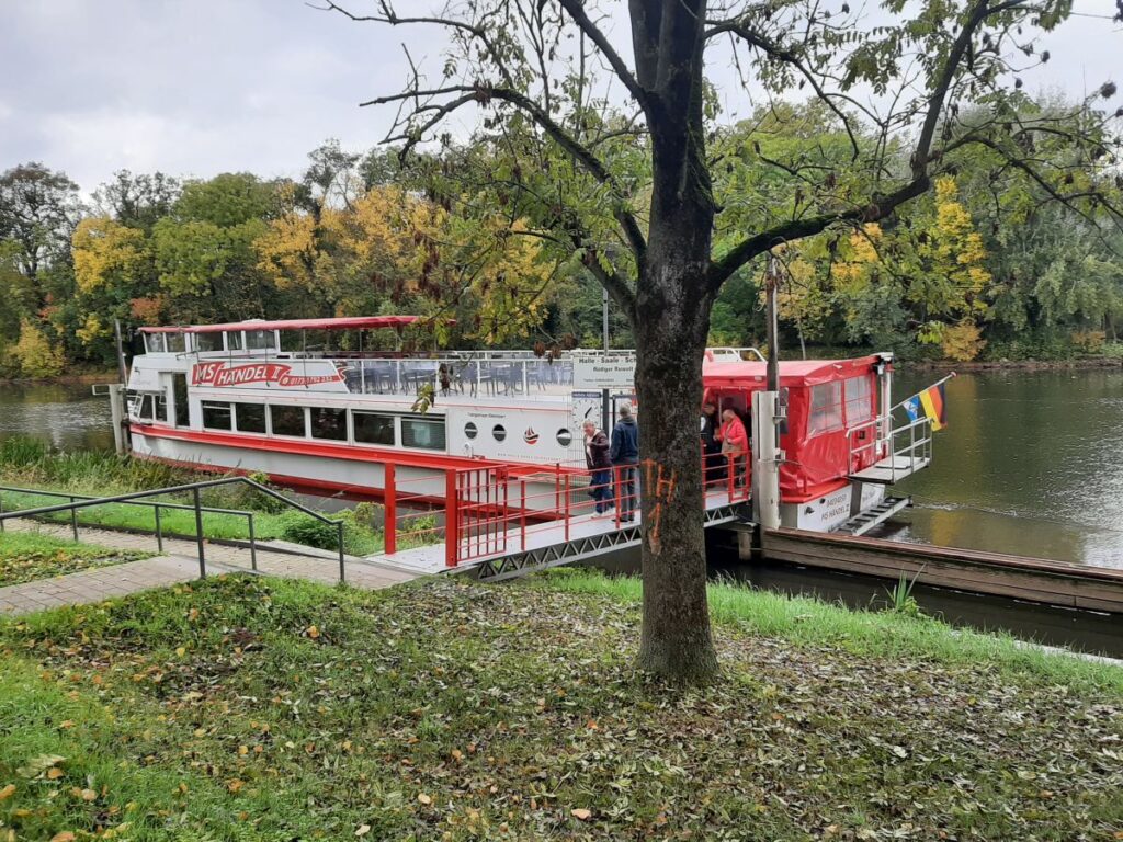 Auf dem Rückweg macht die ‚MS Händel II‘ noch kurz Halt am Anleger des Saalekiez, um Radfahrer von Bord zu lassen. Ich gönne mir ein „Händel-Bier“ und eine „Händel-Bockwurst“. Rentner sagen Danke für eine gelungene Veranstaltung!